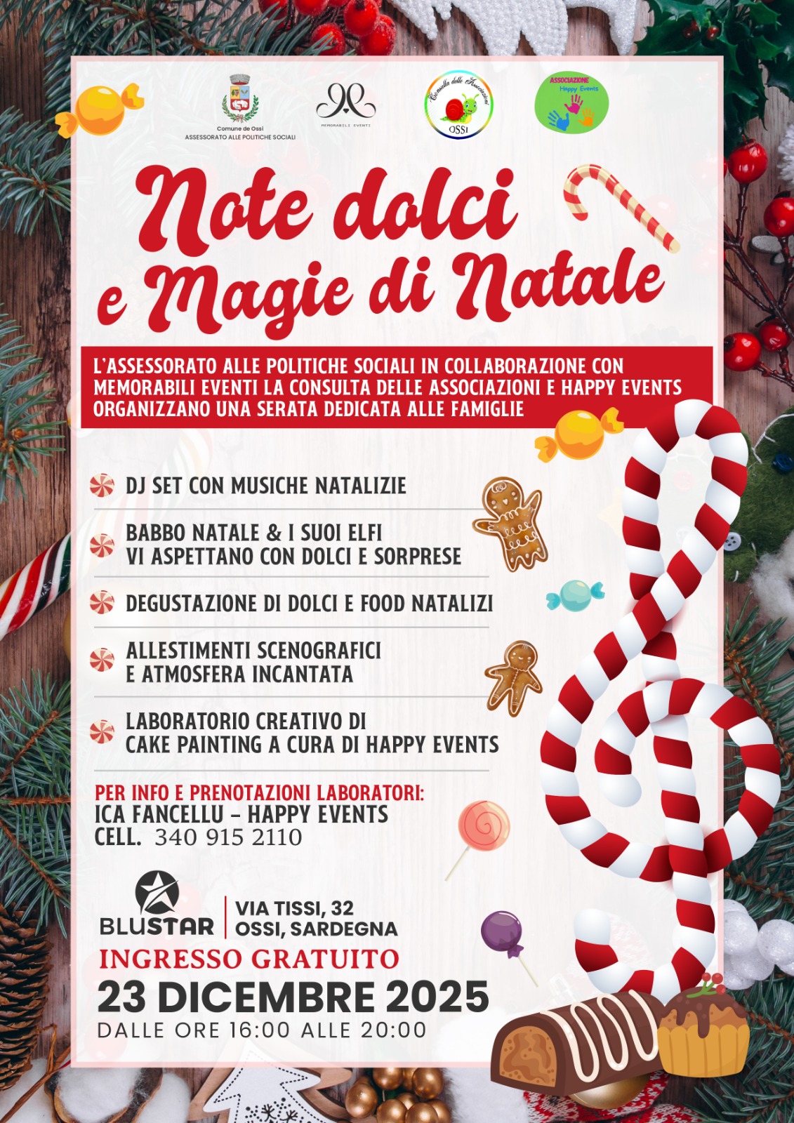 L’Assessorato alle Politiche Sociali, in collaborazione con Memorabili Eventi, la Consulta delle Associazioni e Happy Events, invita la cittadinanza a partecipare il 23 Dicembre a “Note Dolci e Magie del Natale”, una serata dedicata alle famiglie.